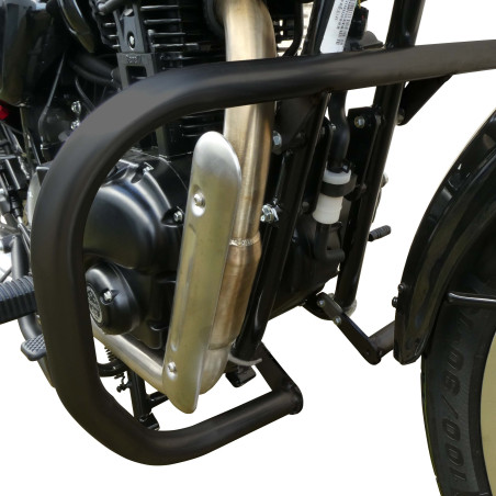 Cette barre de protection en tube d'acier cintré est conçue pour protéger efficacement le pilote (pare-jambe) et le moteur (pare-carter) en cas de chute.