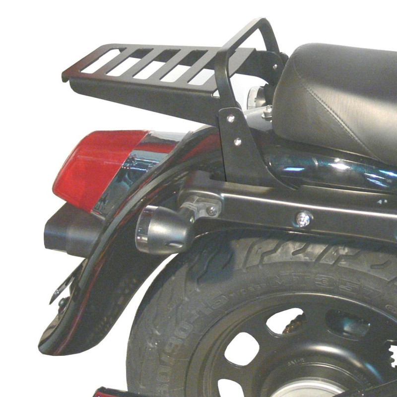 La griglia porta bagagli e le parti di montaggio adatte per la moto sono in acciaio massiccio e fatte senza saldatura per una migliore resistenza alla corrosione. Offriamo due finiture: cromato o verniciato nero (epoxy). Il cromo (protezione di corrosione multistrato) protegge e rafforza le parti fornendo durezza e resistenza a starnuti dando loro uno specchio e aspetto lucido caratteristico di uno stile elegante. La vernice nera epossidica offre una grande resistenza agli urti e ai graffi grazie alla sua eccellente potenza di copertura.