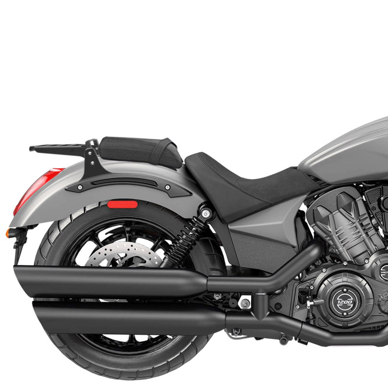 L'installazione avviene in modo semplice e veloce sui punti di fissaggio esistenti grazie al kit di montaggio fornito. Non richiede alcuna perforazione o modifica sulla moto. Grazie al suo sistema modulare, è sufficiente allentare quattro viti per montare e smontare rapidamente i componenti del kit secondo le preferenze del pilota. È possibile completare questa porta bagagli con un arco Basso, Standard o Chopper per formare un completo Sissy Bar