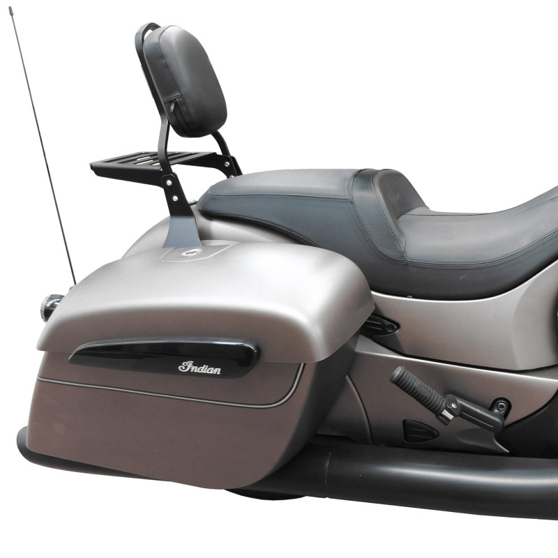 L'installazione avviene in modo semplice e veloce sui punti di fissaggio esistenti grazie al kit di montaggio fornito. Non richiede alcuna perforazione o modifica sulla moto. Grazie al suo sistema modulare, è sufficiente allentare quattro viti per montare e smontare rapidamente i componenti del kit secondo le preferenze del pilota. È possibile completare questa porta bagagli con un arco Basso, Standard o Chopper per formare un completo Sissy Bar