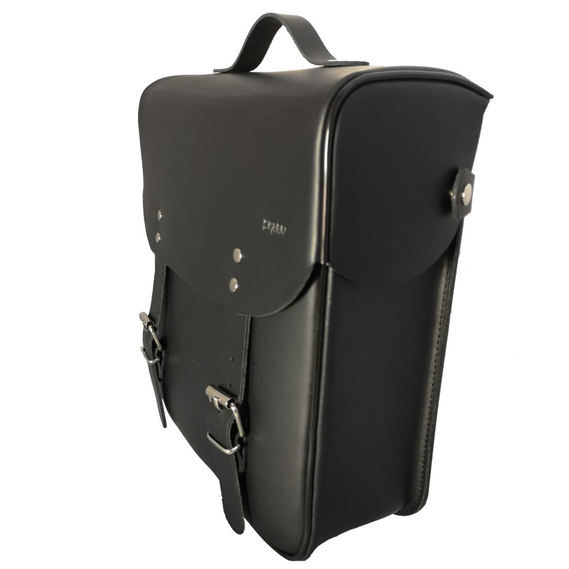 Pannelli interni in PVC rinforzano la struttura della borsa per mantenere la sua forma anche quando è vuota. Due cinghie vengono a chiudere la patta utilizzando cinghie cromate, per rendere il suo interno completamente ermetico.