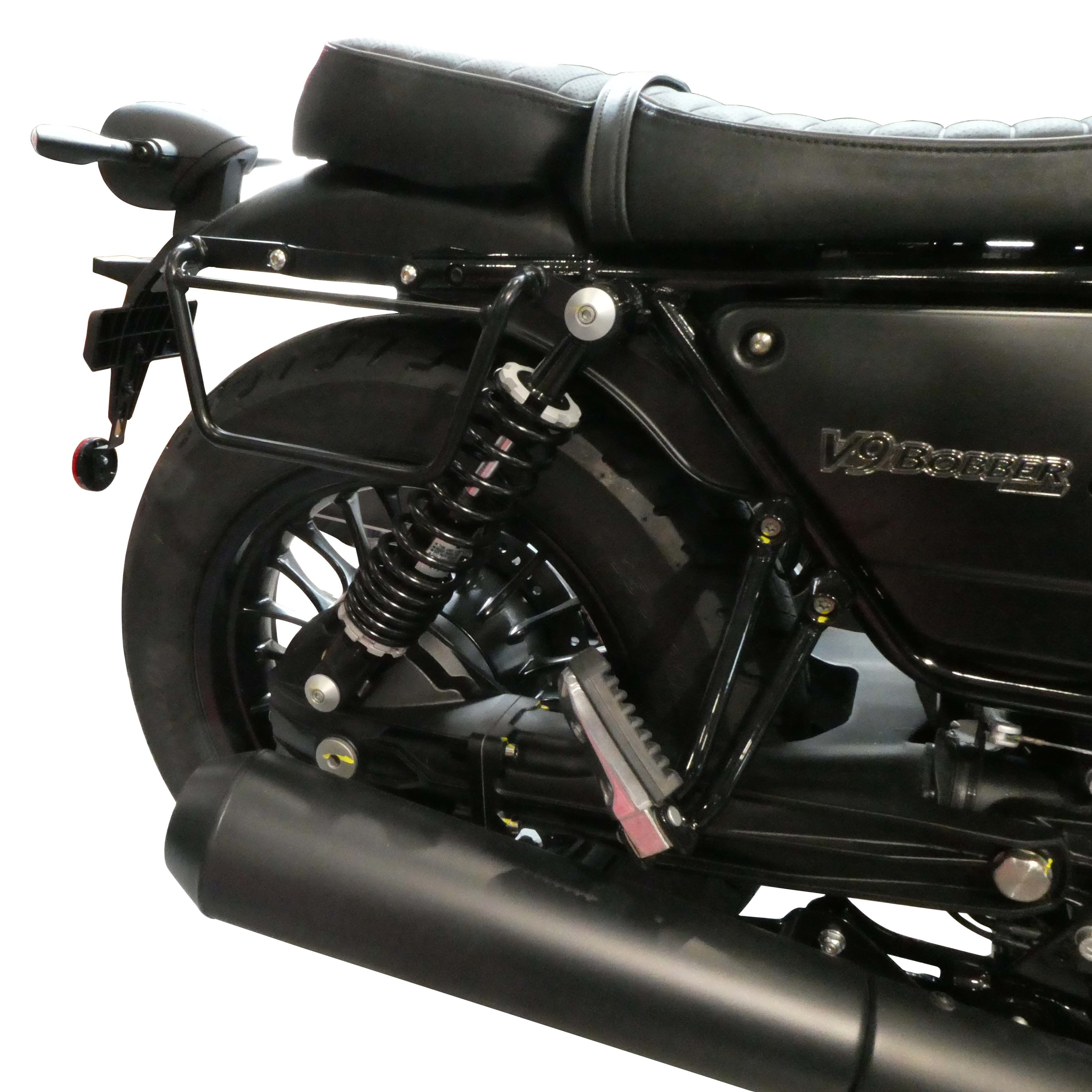 Les Supports de sacoches latérales de la marque SPAAN pour MOTO GUZZI V9 Bobber / Roamer (2018 - ...). Installation simple, rapide et sans modification, Résistance à la corrosion, Visserie incluse.